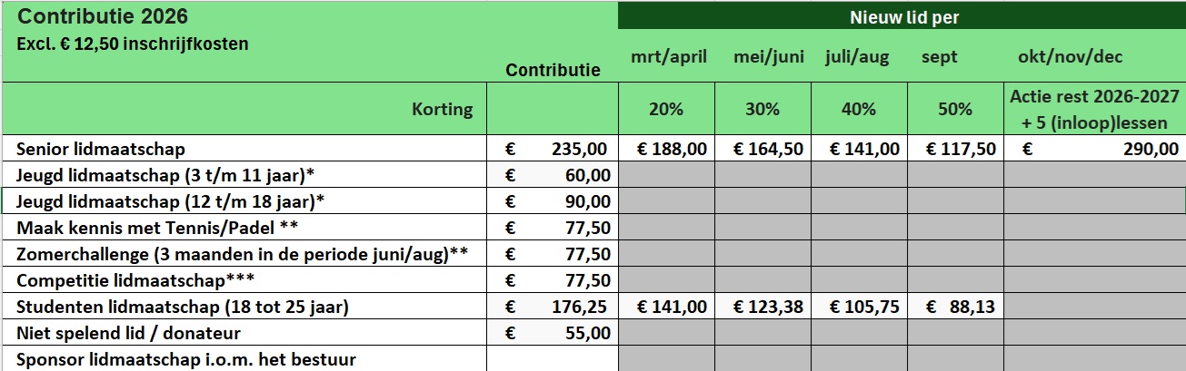 *** Competitie lidmaatschap alleen lid van de vereniging voor het spelen van KNLTB competitie of KNLTB goedgekeurde toernooien. Ander gebruik van de faciliteiten van TV Evergreen is niet toegestaan.