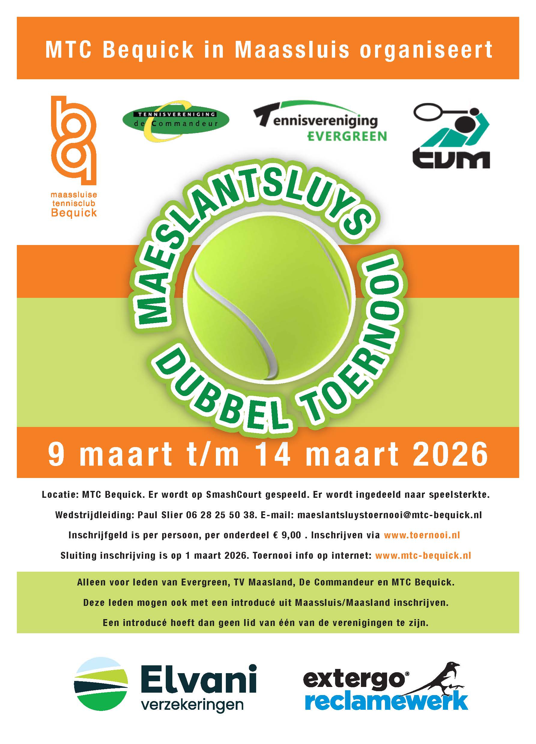 Sluiting inschrijving is op 1 maart 2026. Toernooi info op internet: www.mtc-bequick.nl
